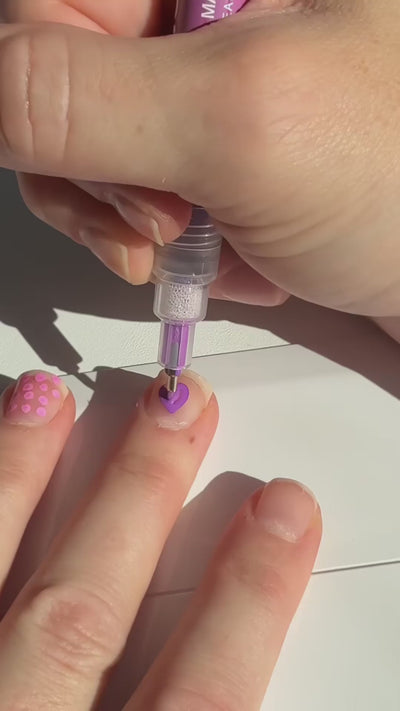 Our pens can be used on natural nails, polish, acrylics, or gel. For best results, always work on clean, dry nails, then finish with a top coat to protect your design and add a brilliant shine.